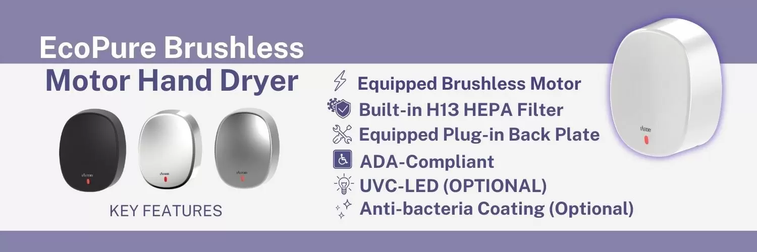 DétailsSèche-mains à moteur sans balais EcoPure | Fabricant de sièges de toilettes chauffants avec télécommande | Hokwang