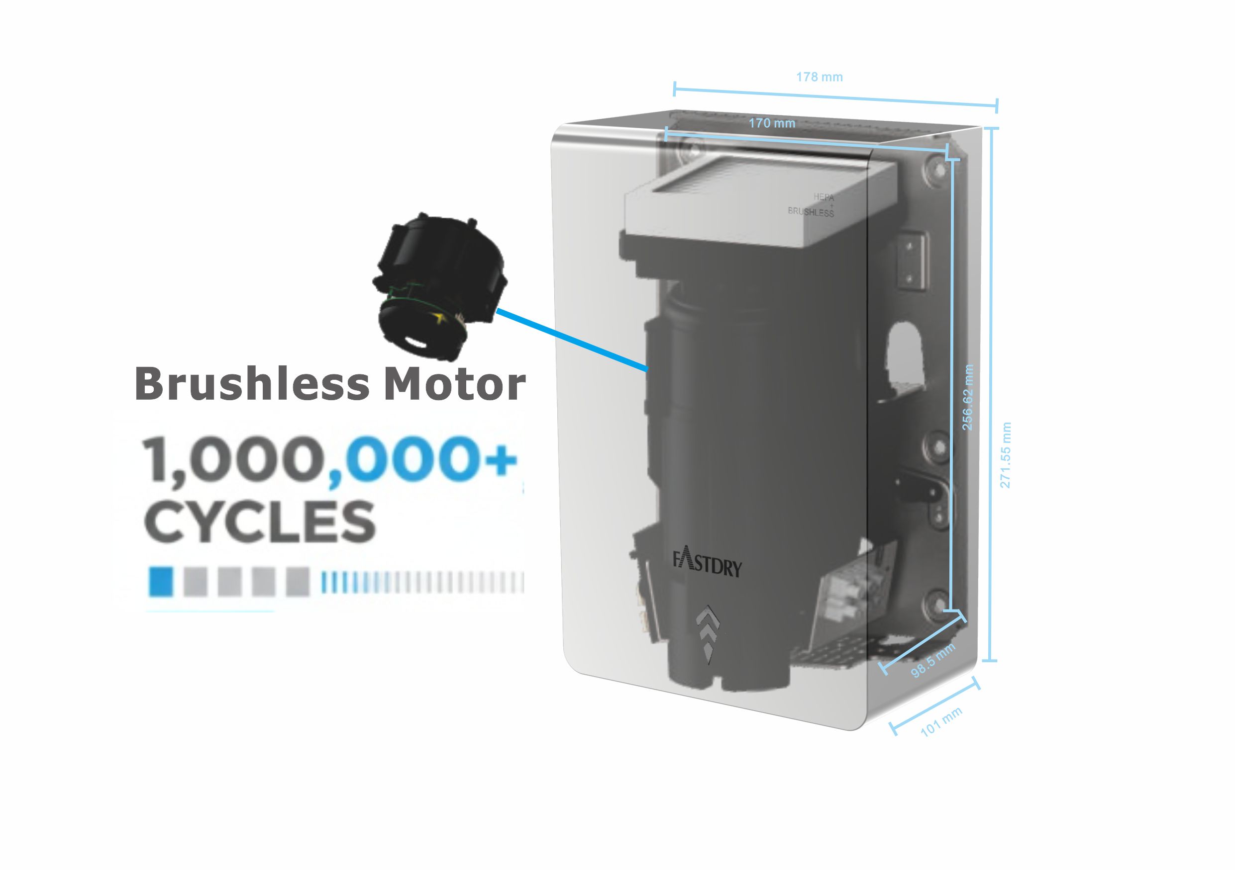Dayanıklılık ve gelişmiş hijyen için tasarlanan Yüksek Hızlı Fırçasız El Kurutma...